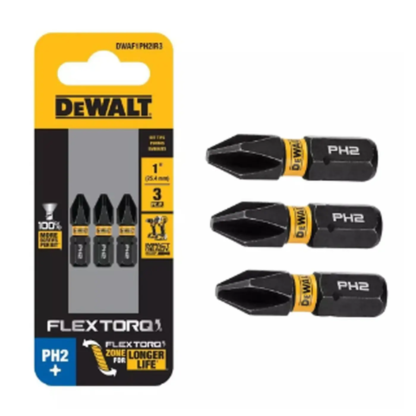 BITS PHILLIPS PH2 FLEXTORQ 1'' (2,5CM) CARTELA COM 3 UNIDADES DWAF1PH2IR3 DEWALT