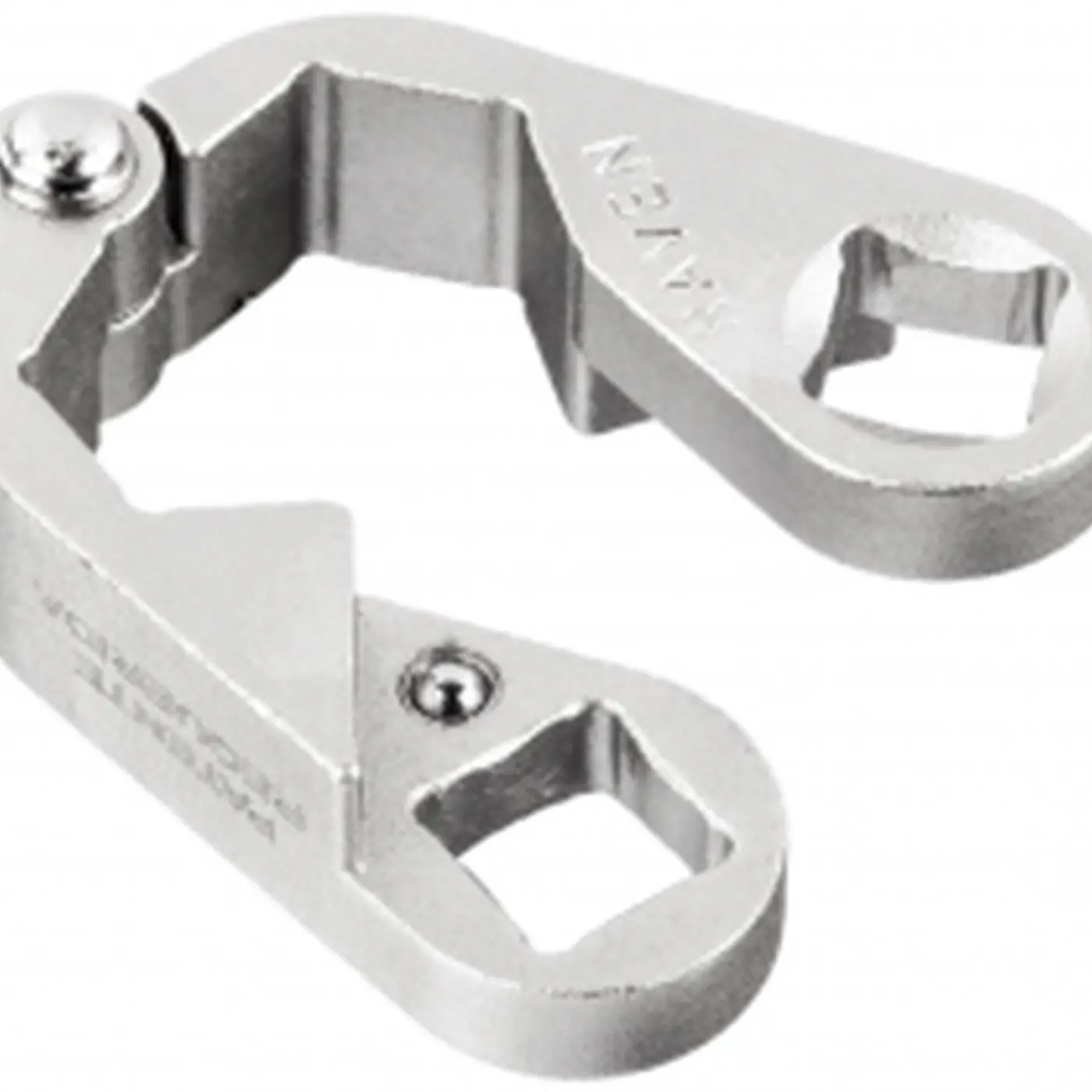 Nome: Chave articulada com encaixe sextavado de 22mm para sonda lambda / sensor de oxigênio. Encaixe de 1/2". Construção robusta e design inovador: suas duas metades são unidas por um pino rebitado, que permite que a chave seja aberta e fechada livremente. Quando fechada, envolve completamente o sextavado da sonda lambda, diferente das ferramentas tradicionais para sonda. Possui sistema de mola e esfera que mantém as duas partes travadas. Além disso, o cabo de força utilizado para acionar a chave atravessa as duas metades da mesma, mantendo-as unidas.
