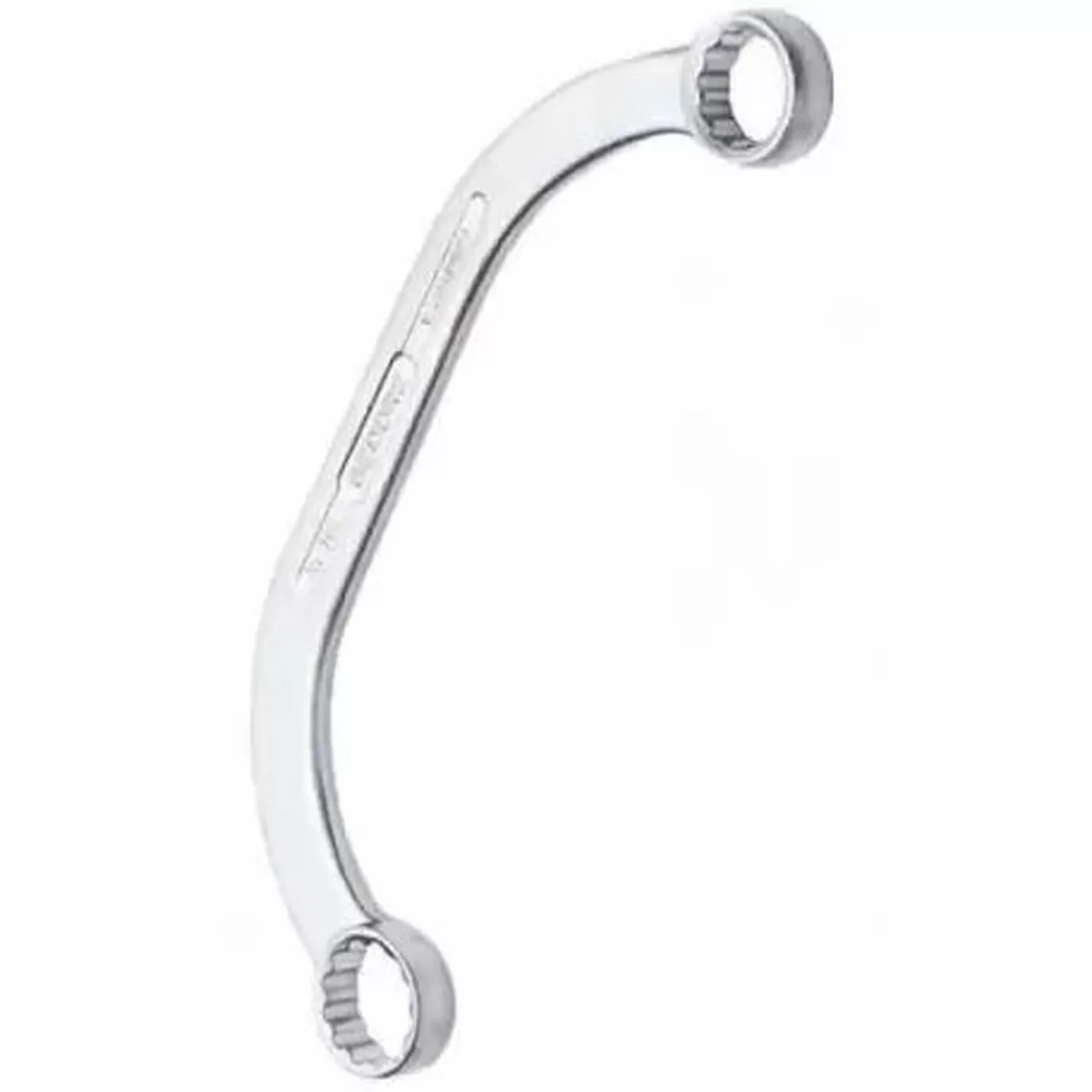 - A chave starter meia lua da marca Gedore é fabricada em aço Gedore-Vanadium e possui seu acabamento niquelado e cromado. Além disso, tem a função especial para motor de partida e também duas extremidades Unit Drive com medidas diferentes e haste curva.
