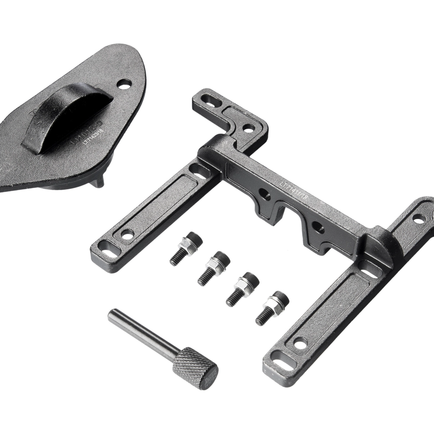 Composição: ferramenta para posicionar a árvore de comando de válvulas, ferramenta para posicionar a árvore de manivelas, pino para posicionar o contrapeso da polia da árvore de manivelas dos motores 1.0 e 4 parafusos e porcas.