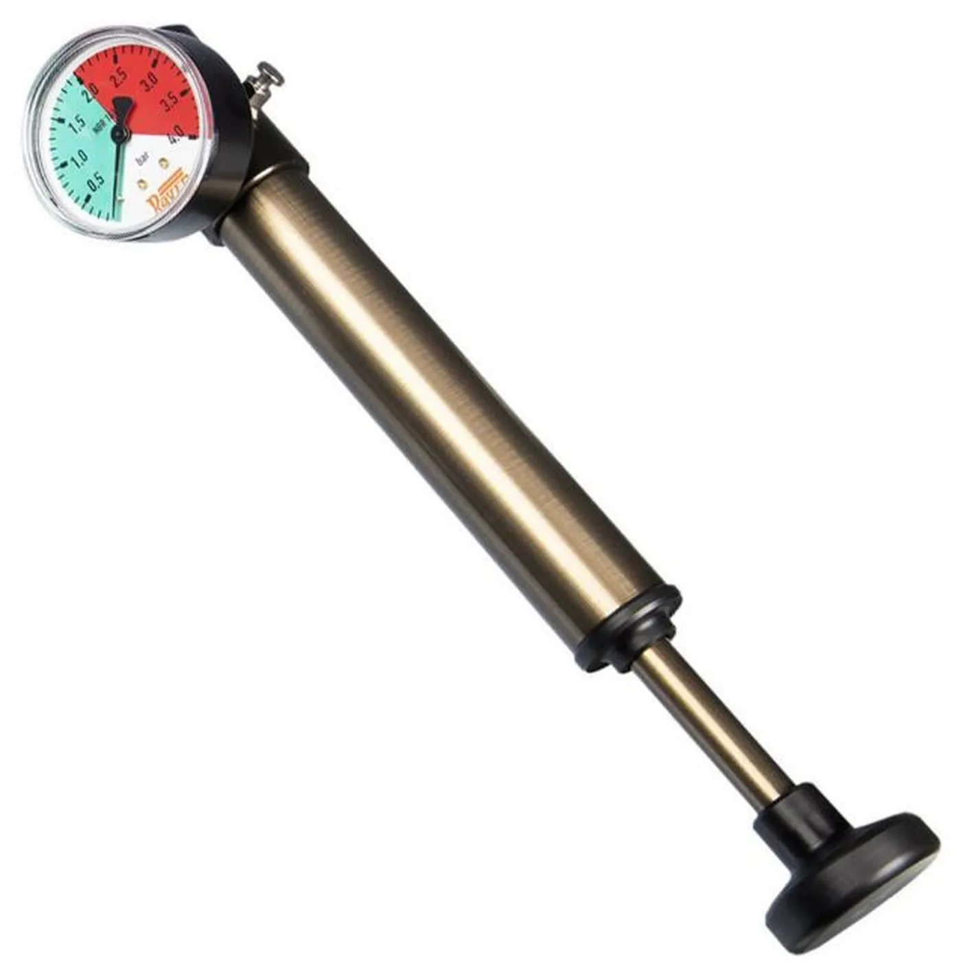 - Possui bomba (com manômetro seco), mangueira, 2 adaptadores longos para conexão e 10 adaptadores plásticos para teste.