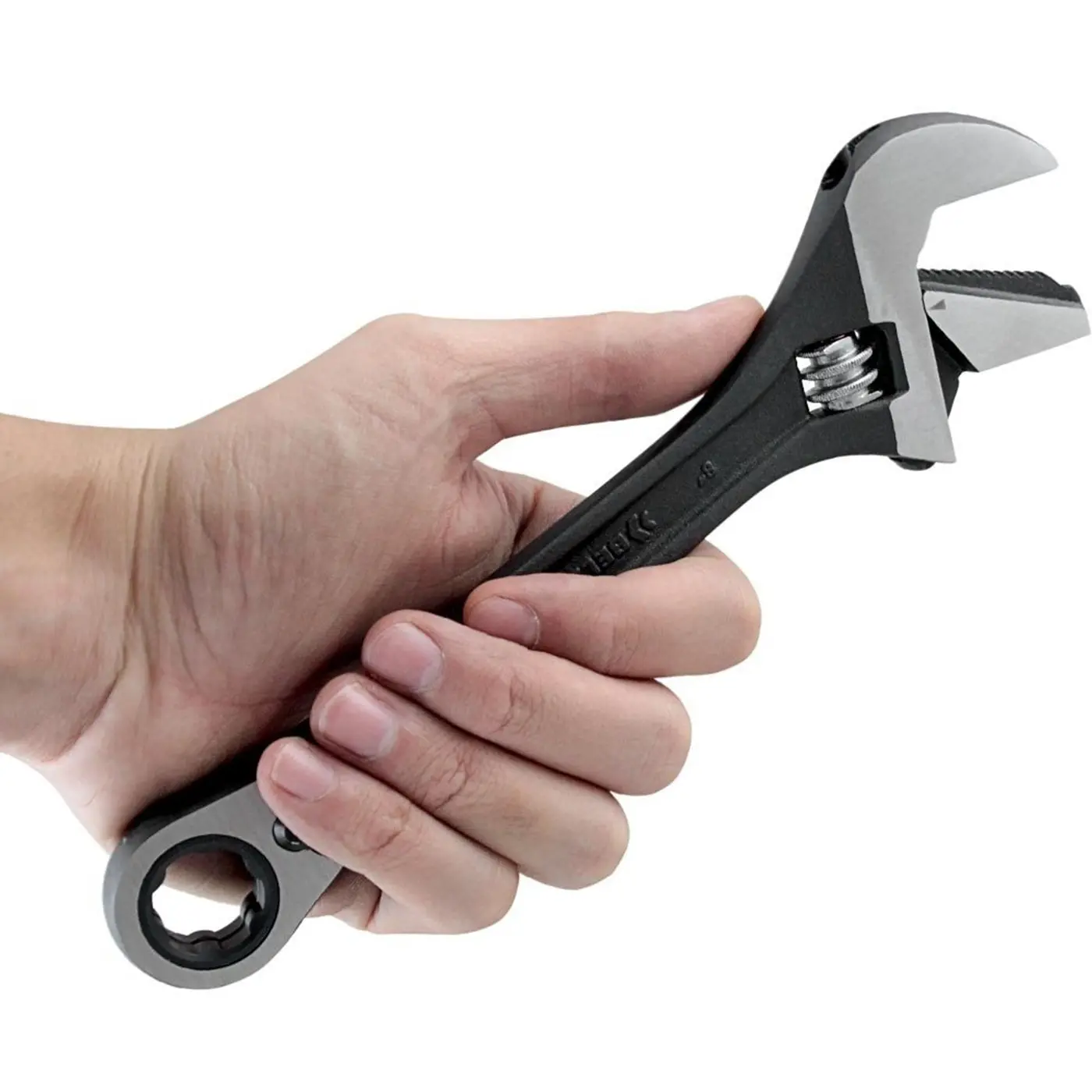 • Possui mandíbula reversível para usar como: chave ajustável e chave de cano