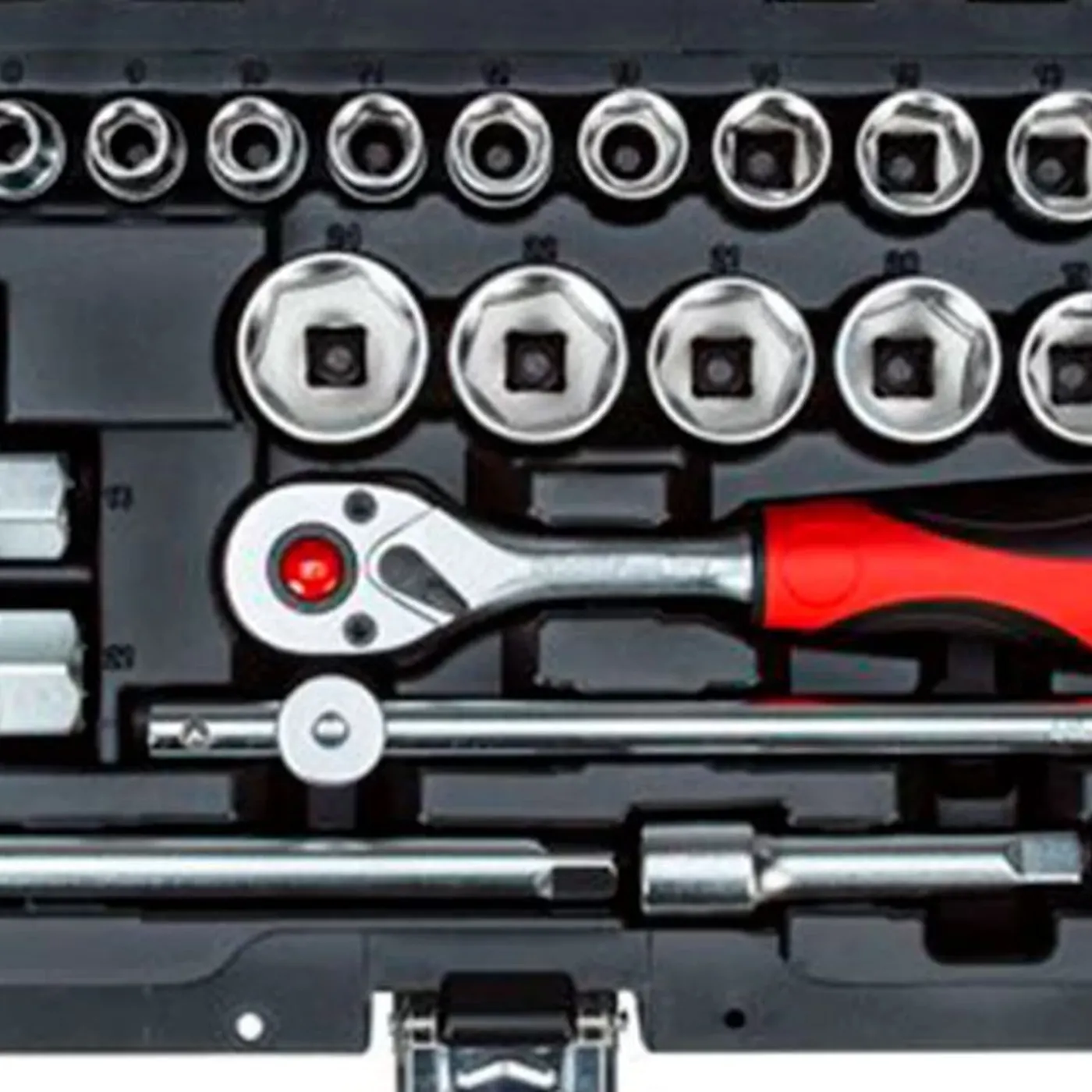 - 18 Soquetes sextavados 3/8": 6 – 7 – 8 – 9 – 10 – 11 – 12 – 13 – 14 – 15 – 16 – 17 – 18 – 19 – 20 – 21 – 22 – 24mm