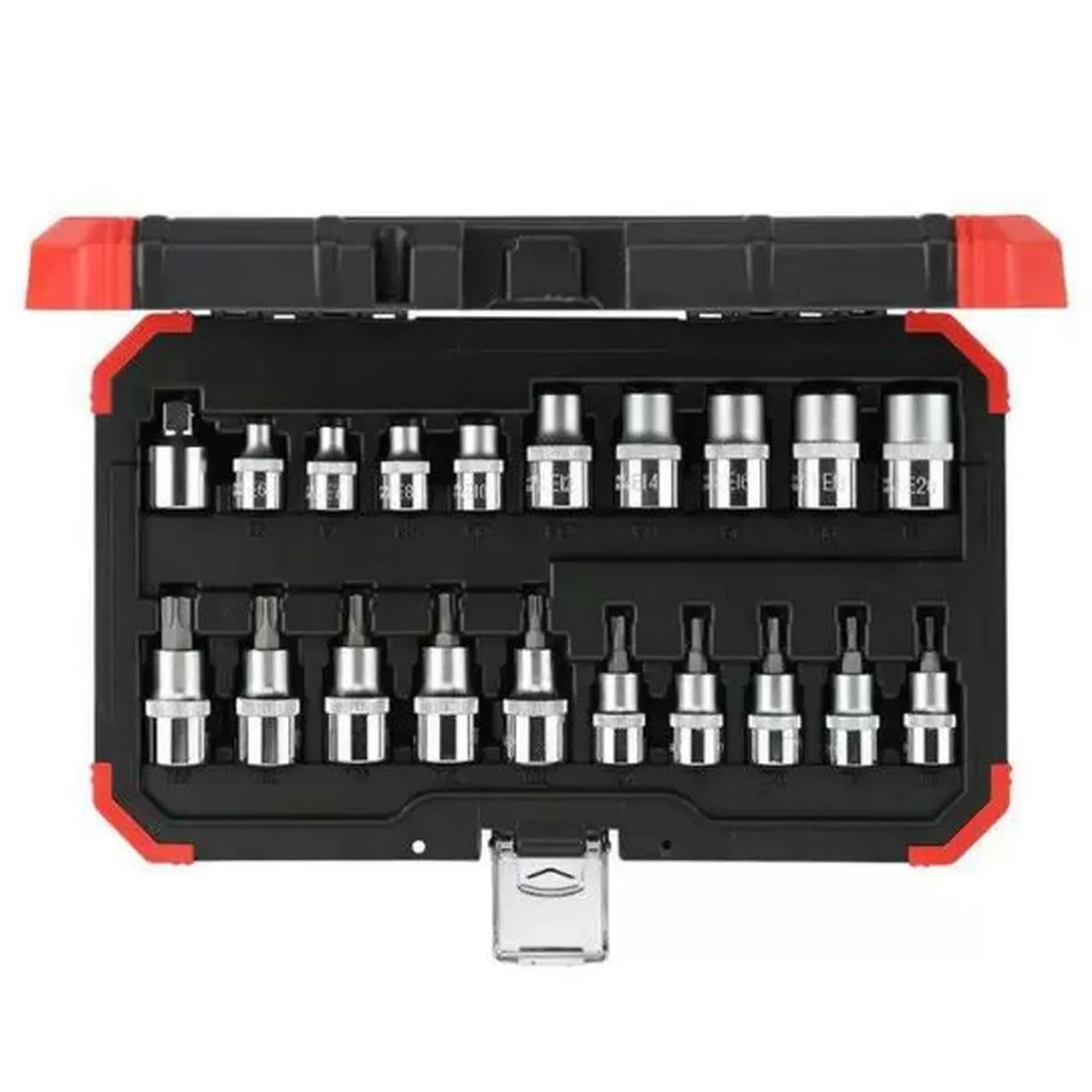 - 5 Soquetes 1/2" Tork: E12 – E14 – E16 – E18 – E20 (perfil hexalobular)