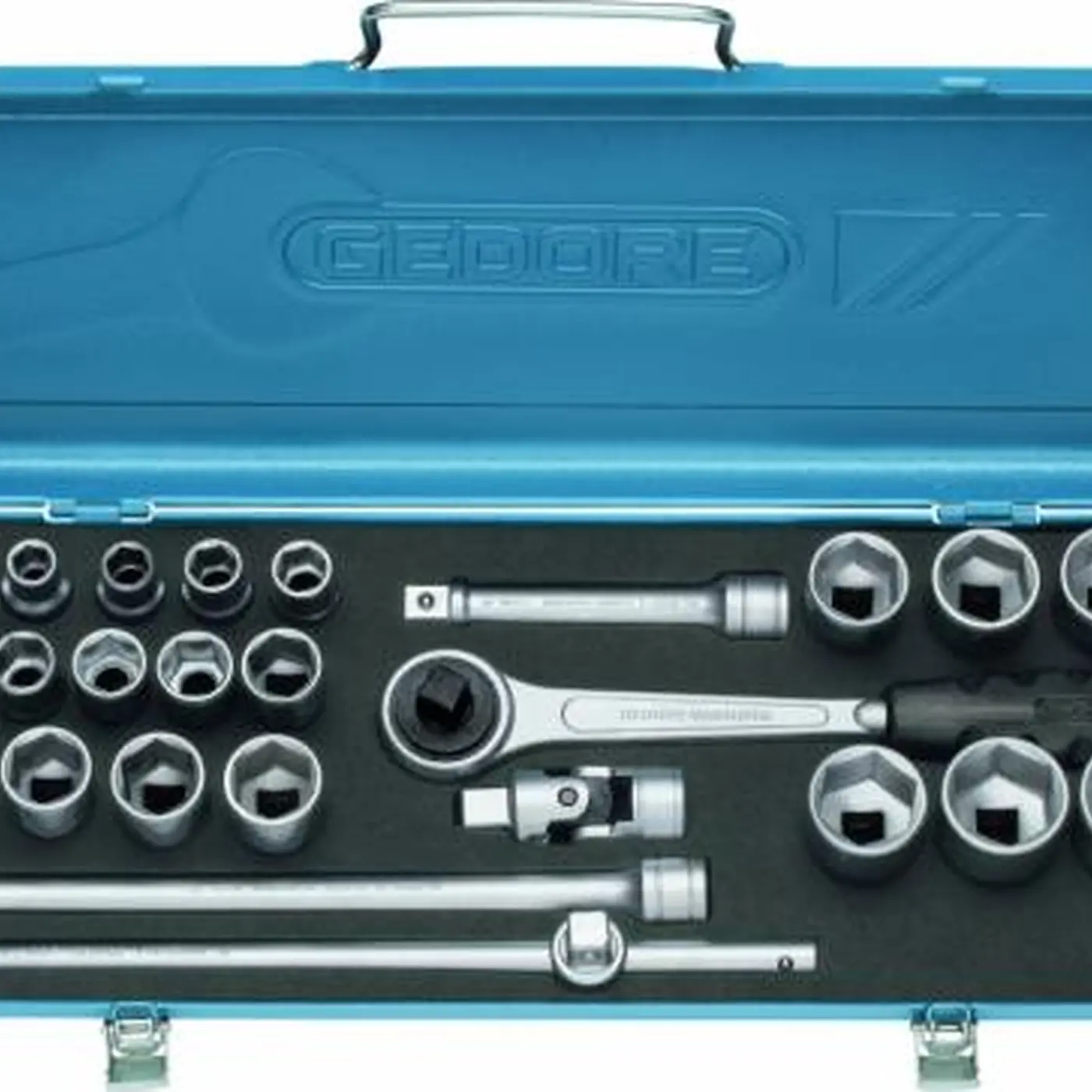 JOGO SOQUETES SEXTAVADOS E ACESSÓRIOS 1/2" 25 PEÇAS 19KMU GEDORE