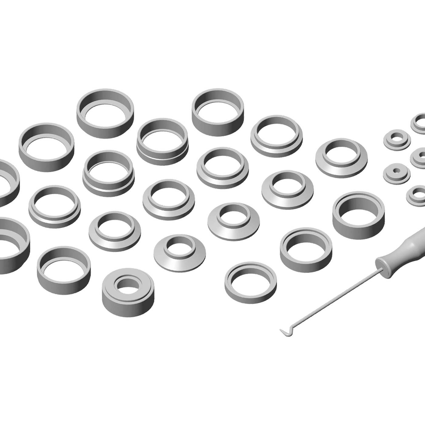 - 17 - Adaptadores para instalar retentores com diâmetro externo de 37 / 39 / 42 / 44 / 46 / 48 / 50 / 52 / 54 / 56 / 58 / 60 / 62 / 64 / 66 / 68 / 70mm (101300-00E e 101300-00F)