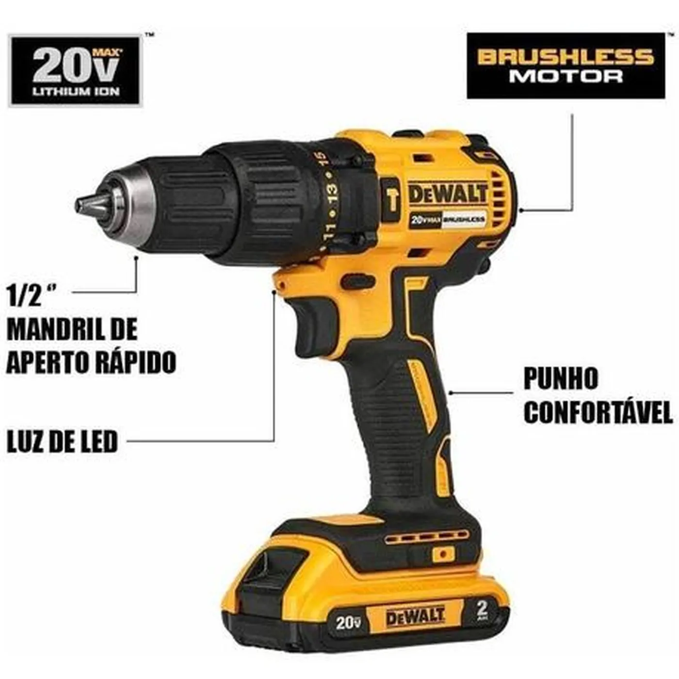 Com a tecnologia BRUSHLESS a Parafusadeira/Furadeira de Impacto sem fio 20V conta com muito mais eficiência através de mais tempo de uso e menos manutenções.