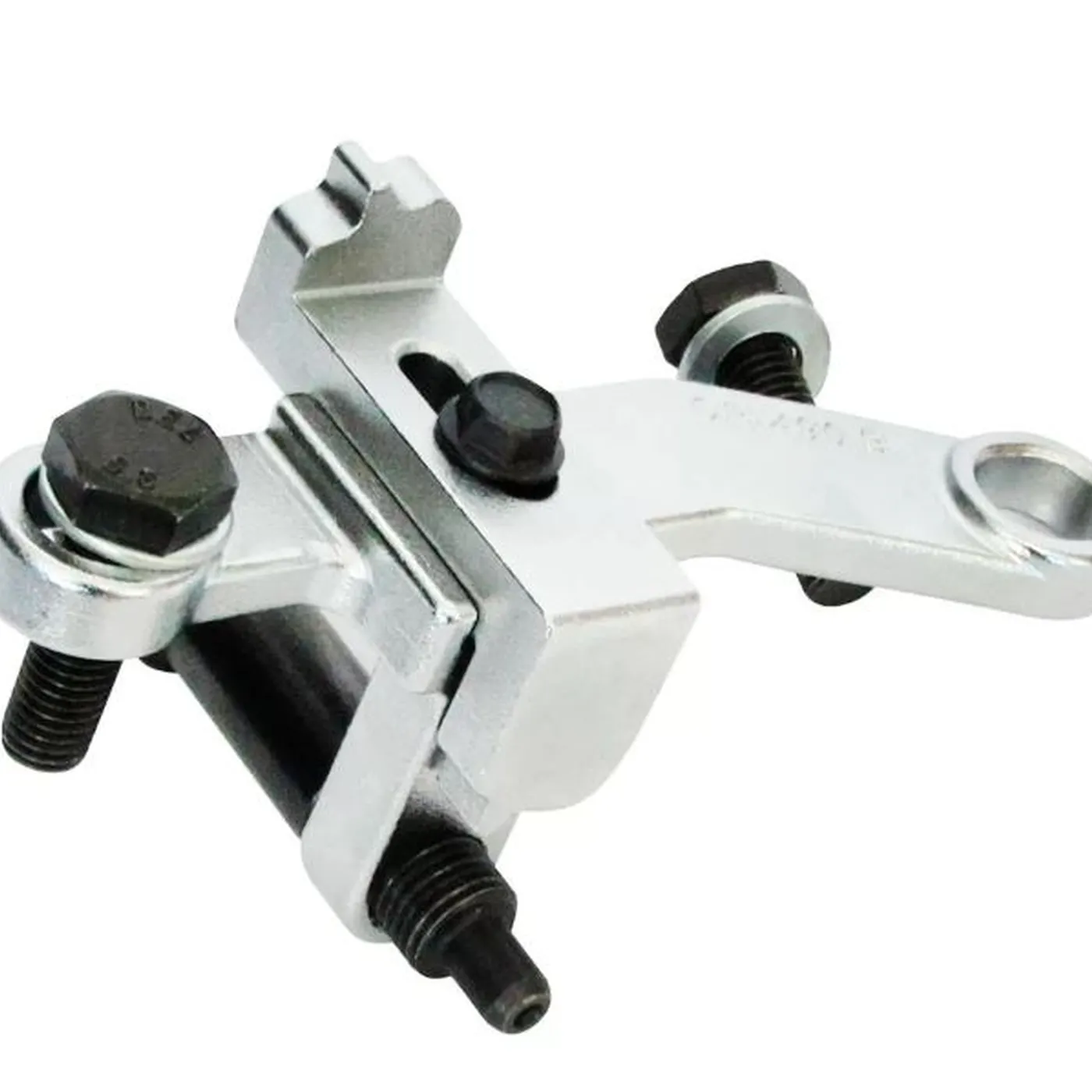 Nome: Ferramenta para posicionar em sincronismo a árvore de manivelas (através do volante do motor / cremalheira) e para travar o volante / cremalheira dos motores GM 1.0 12V (3 cils.) / 1.0 12V (3 cils.) turbo / 1.2 12V (3 cils.) turbo CSS Prime / Ecotec. Aplicação: Onix 2ª ger. / Onix Plus (sedan) 1.0 / 1.0 turbo (19>) e Tracker 3ª ger. 1.0 turbo / 1.2 turbo (20>). Acompanha 2 parafusos e arruelas para fixação da ferramenta.